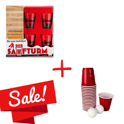 Der Saufturm ist ein klassisches Trinkspiel, das auf keiner Party fehlen darf. Dieses Bundle enthält den Saufturm inklusive 20x roten Schnapsbechern und 2 kleinen Bällen – ideal für abwechslungsreiche Spielrunden und spontane Trinkspiel-Regeln.